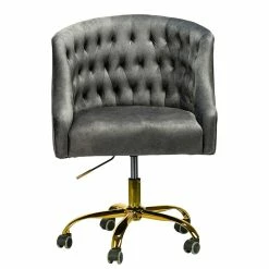 This is not your standard office chair. Its curvaceous velvet seat add a modern touch to conference rooms and fancy corner offices. It offers supreme comfort thanks to its ergonomic shape and features a durable frame and smooth-rolling casters. Durable gold finish metal legs and high performance all directional wheels allow smooth movement across carpeting. Button-tufted details dot the back for a touch of texture. This office chair is a wonderful addition to any office or home office.