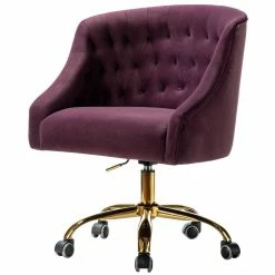 This is not your standard office chair. Its curvaceous velvet seat add a modern touch to conference rooms and fancy corner offices. It offers supreme comfort thanks to its ergonomic shape and features a durable frame and smooth-rolling casters. Durable gold finish metal legs and high performance all directional wheels allow smooth movement across carpeting. Button-tufted details dot the back for a touch of texture. This office chair is a wonderful addition to any office or home office.