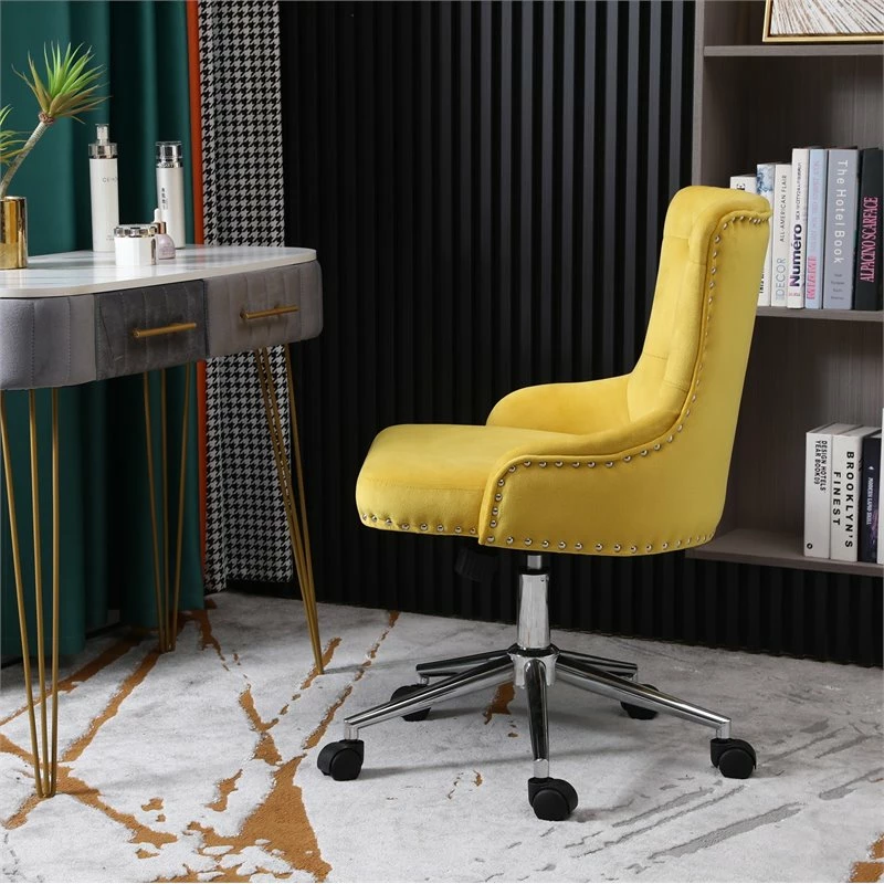 Flash Sale 🔥 Alexent Mid-Century Velvet Office Chair With Adjustable Height In Yellow 🌟