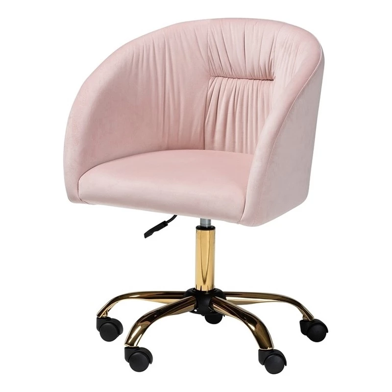 Deals 🤩 Baxton Studio Ravenna Pink Velvet Fabric And Gold Metal Swivel Office Chair 😀