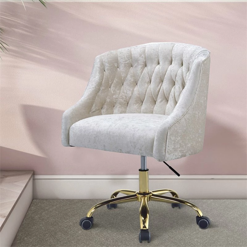 Flash Sale 👏 Benjara 23″ Fabric Swivel Office Chair With Metal Base In Cream And Gold ❤️