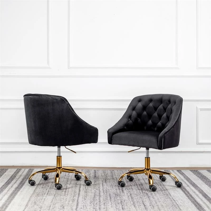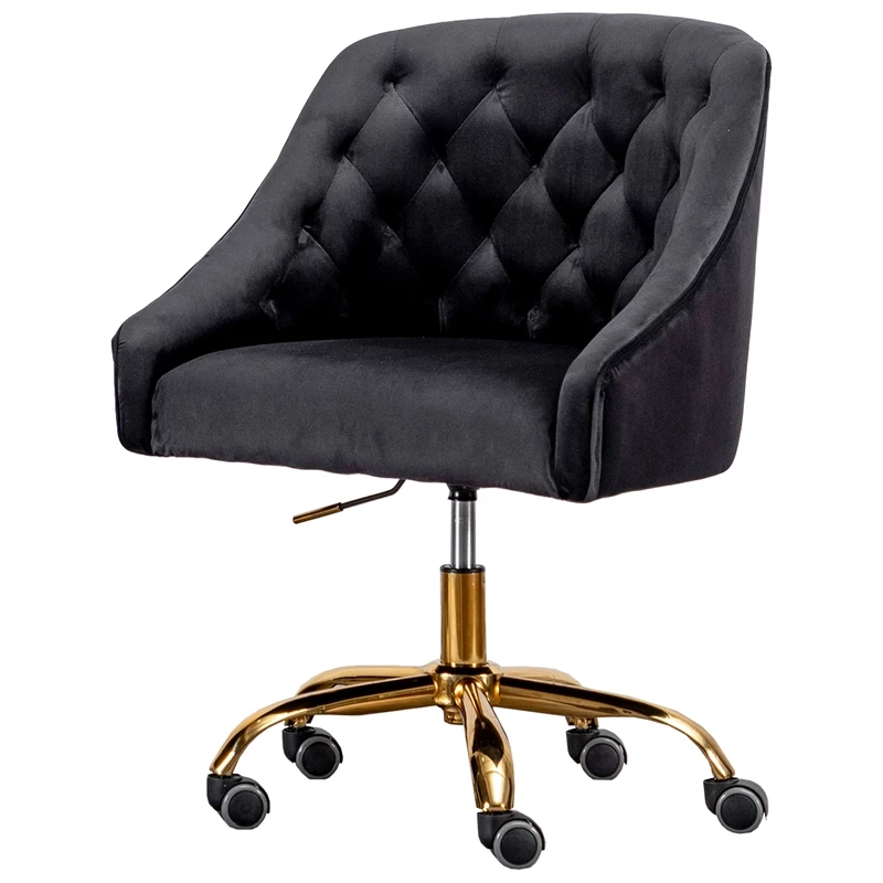 Best Sale 👍 Best Master Furniture Black Velvet Tufted Swivel Task Chair With Gold Base And Wheels ❤️