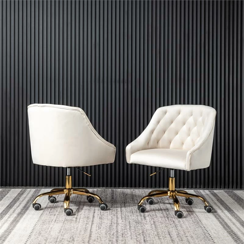 Be the first to review “Brand new 🎉 Best Master Furniture Cream Velvet Tufted Swivel Task Chair With Gold Base And Wheels ✨” Cancel reply