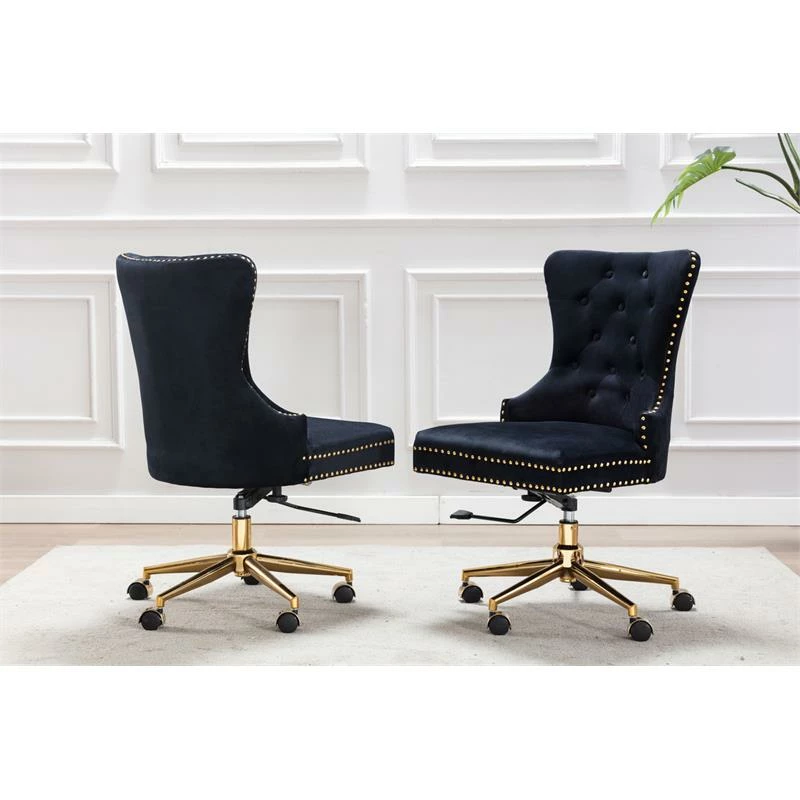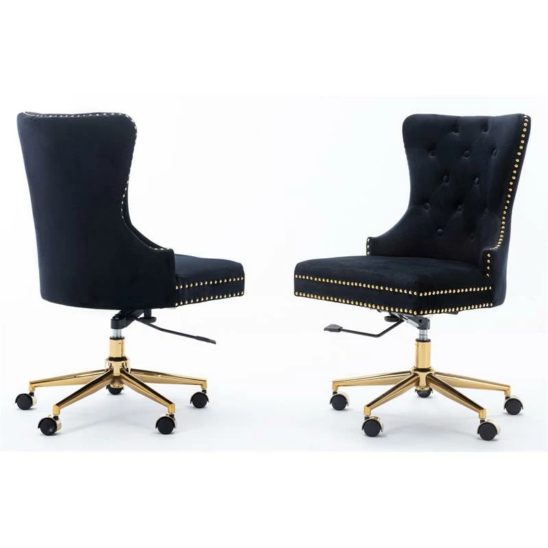 Cheap 😍 Best Quality Furniture Swivel Office Chair In Black Velvet With Gold Chrome And Tufted Seat Back ✔️
