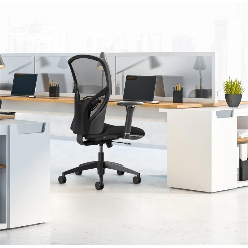 New 🔥 Bowery Hill 22.5″ Modern Metal And Fabric Mesh High-Back Task Chair In Black 🔔