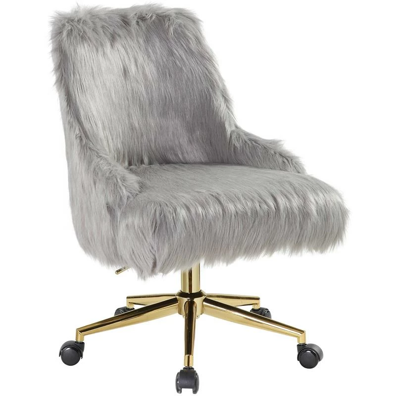 Deals ๐ฅ Bowery Hill Contemporary Office Chair In Gray Faux Fur & Gold Finish ๐งจ