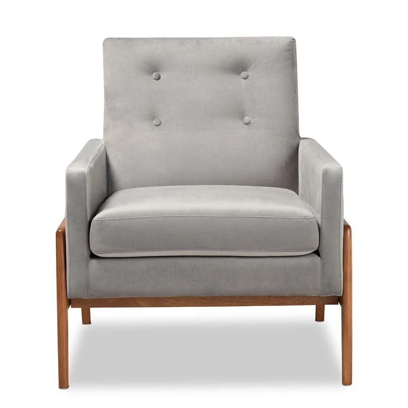 Flash Sale 😉 Bowery Hill Mid-Century Velvet Fabric Upholstered And Brown Finished Wood Chair 👍