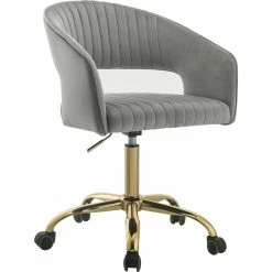 Buy โ๏ธ Bowery Hill Modern Office Chair In Gray Velvet And Gold ๐