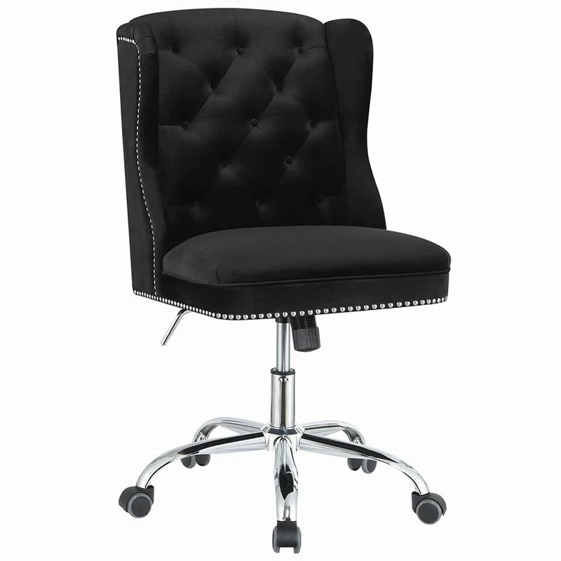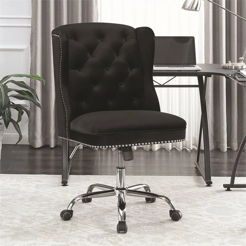 Promo ⭐ Coaster Velvet Tufted Swivel Adjustable Office Chair In Black 🤩
