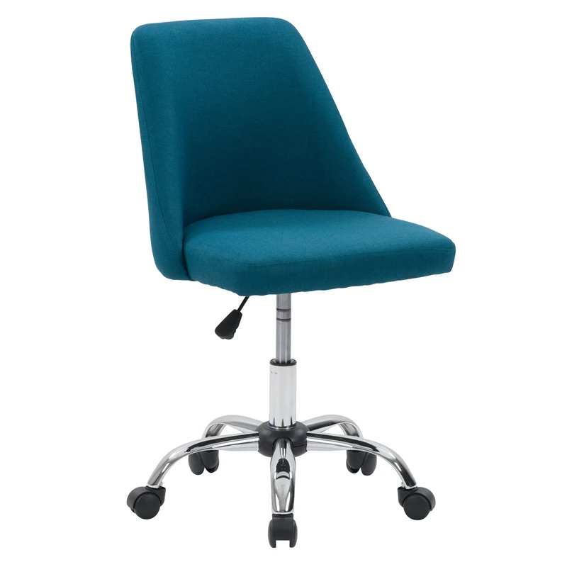 Modern and stylish, this desk chair is just what your home office needs. It showcases an armless design with a soft, comfortable seat cushion. This chair is upholstered in a classic woven upholstery and supported by a durable steel frame. With a five-star chrome base that helps you move from task to task with ease, it’s the perfect finishing piece for any workspace.