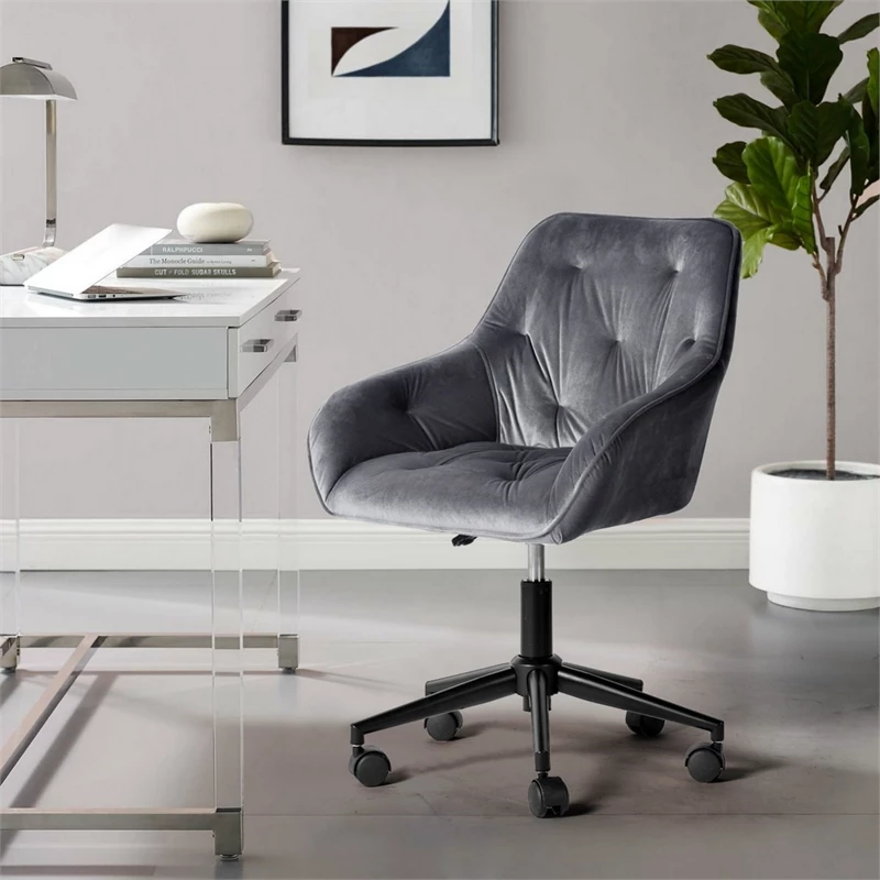 Hot Sale 🔥 CRO Decor Velvet Home Office Desk Chairs Adjustable Task Desk Chair In Gray 🎉