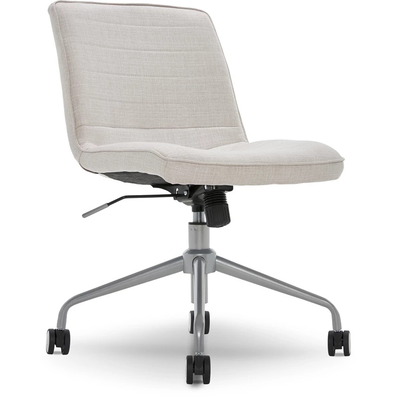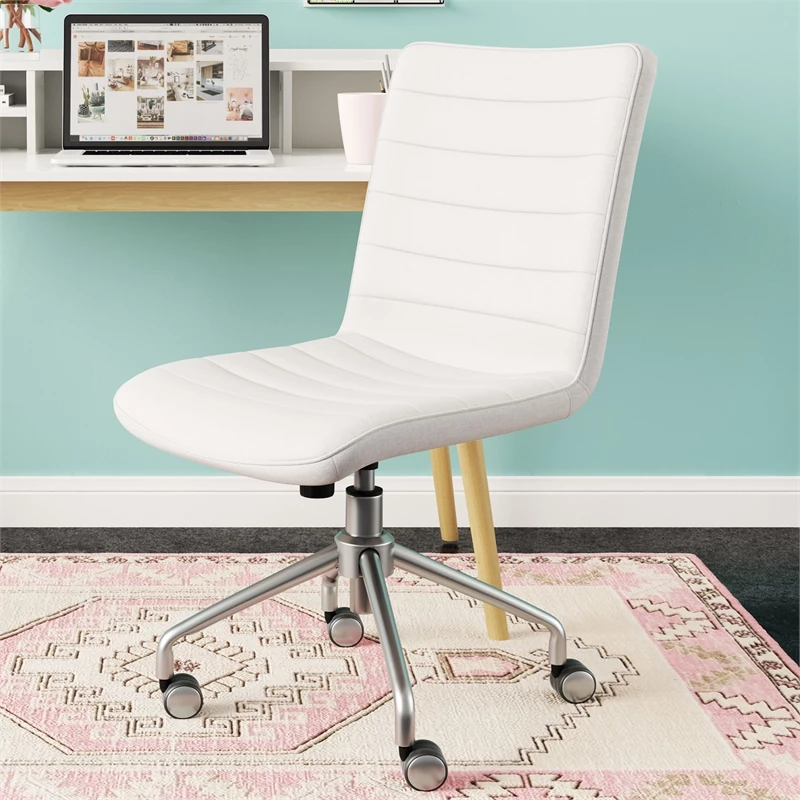 Add a luxe touch to your home office with this cute rolling desk chair. The boring office chair gets a serious upgrade with this stylish design. Equal parts cozy and trendy, this sturdy swivel chair doesn’t sacrifice one bit of comfort to bring classic, feminine style to your workspace. Contemporary stitched lines elevate the classic silhouette, making this task chair the ultimate addition to your everyday routine. Whether you’re decorating a small room or larger space, a teen bedroom or home office, this fabulously stylish, famously functional office chair expertly balances modern style with practical details. Get comfy in the tailored fabric seat, then tap into your creative potential when you’re hard at work. Parisian chic comes together with function and comfort to create a sophisticated workstation.