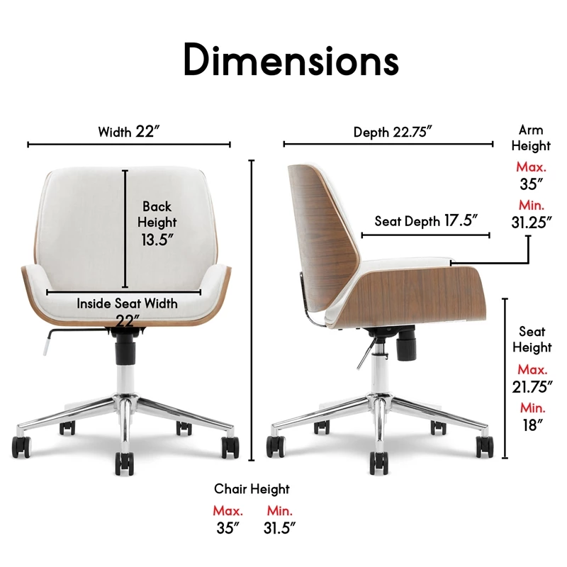 Make a chic statement in any space with the elegant Elle Decor Ophelia Office Chair. Thanks to soft tailoring on the comfortable cushion and bentwood accents, this stylish armless design adds a dose of feminine charm to any setup. The fabric’s cute color is ideal for accessorizing a home office, bedroom, or even dorm room. You’ll look forward to getting work done once you have this comfortable chair waiting for you. The modern chrome accents and wood seat elevate this chair above those boring office chairs out there, making this task chair the perfect statement piece for spaces big and small. Whether you’re setting up a home office of making your own space at work, the modern bentwood seat and its sophisticated color set this chair apart from other office chairs. Comfy and classy, this chair does it all.