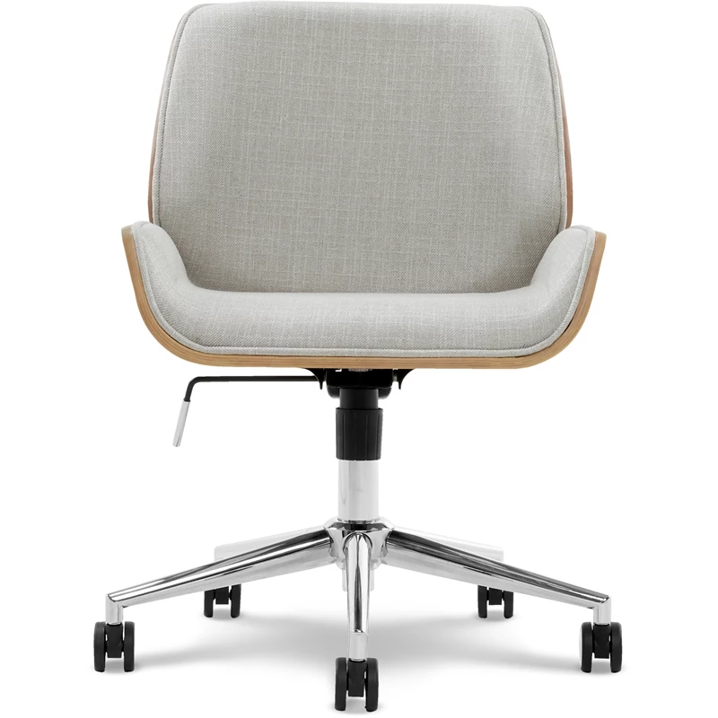 Make a chic statement in any space with this elegant office chair. Thanks to soft tailoring on the comfortable cushion and bentwood accents, this stylish armless design adds a dose of feminine charm to any setup. The fabric’s cute color is ideal for accessorizing a home office, bedroom, or even dorm room. You’ll look forward to getting work done once you have this comfortable chair waiting for you. The modern chrome accents and wood seat elevate this chair above those boring office chairs out there, making this task chair the perfect statement piece for spaces big and small. Whether you’re setting up a home office of making your own space at work, the modern bentwood seat and its sophisticated color set this chair apart from other office chairs. Comfy and classy, this chair does it all.