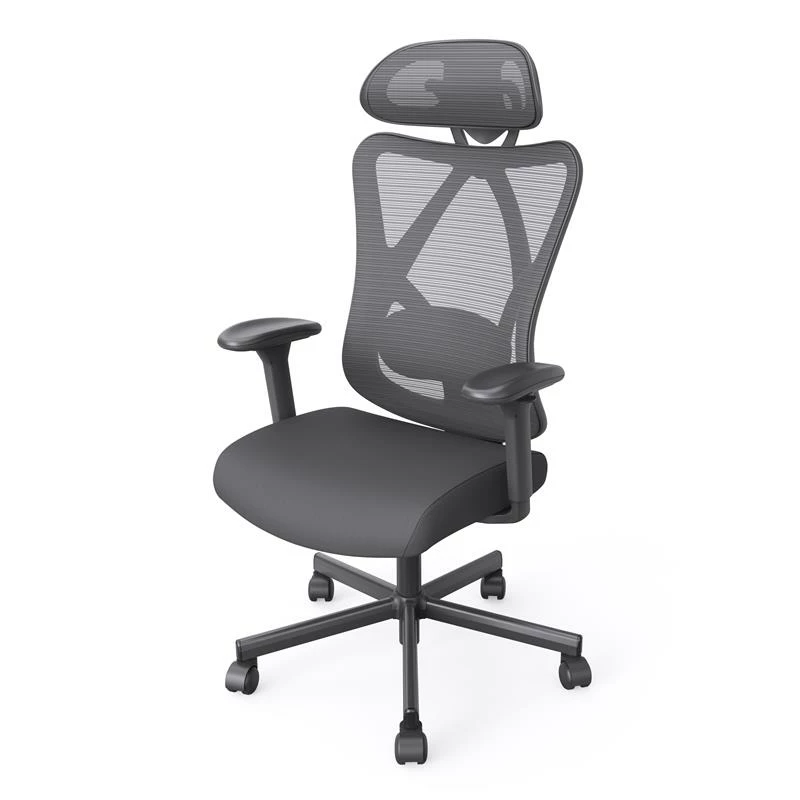 Take your workday comfort and support to new levels when you upgrade to this contemporary metal adjustable swivel office chair in black. Featuring a waterfall seat and wheeled base, the desk or gaming chair delivers multiple adjustment points for a perfect fit. The contoured back and arms add ergonomic support while a sleek, modern design means this office chair works in both home and professional settings.