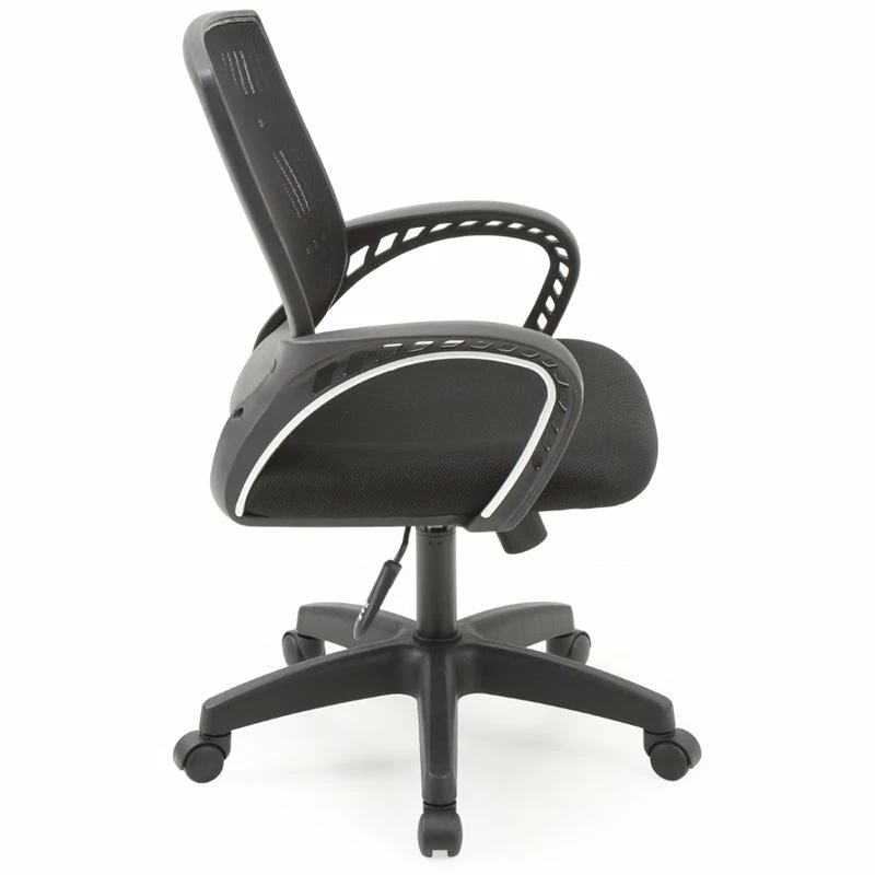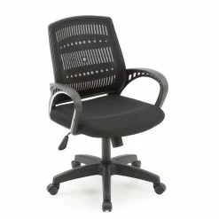 Enhance your working experience with this Hodedah Adjustable Mid-Back Mesh Swivel Office Chair in Black Fabric. This office chair is a great addition to any home or office. This office chair comes with a thick padded seat and breathable mesh back for all day comfort. You can easily adjust the seat height according to your preference. This office chair has a five point base that offers stability and comes with hooded wheel casters that facilitate smooth movement around any type of flooring. Available in a variety of colors, one is sure to match your room decor.