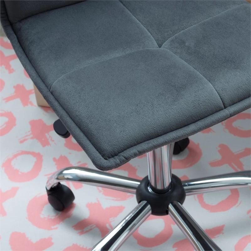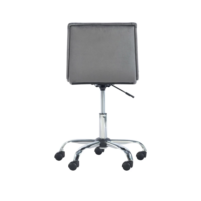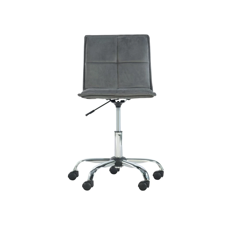 Add contemporary style to your home office with the Bennett Office Chair. The sleek quilted seat is upholstered in a soft, modern gray and set atop a sturdy gleaming silver chrome base. Black easy-roll casters make it simple to maneuver throughout your space, while the adjustable height allows the chair to work with any desk or table.