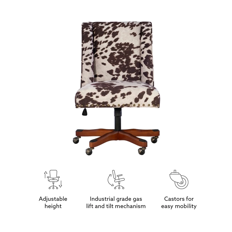Outlet ๐งจ Linon Draper Wood Upholstered Office Chair In Brown Cow Print ๐