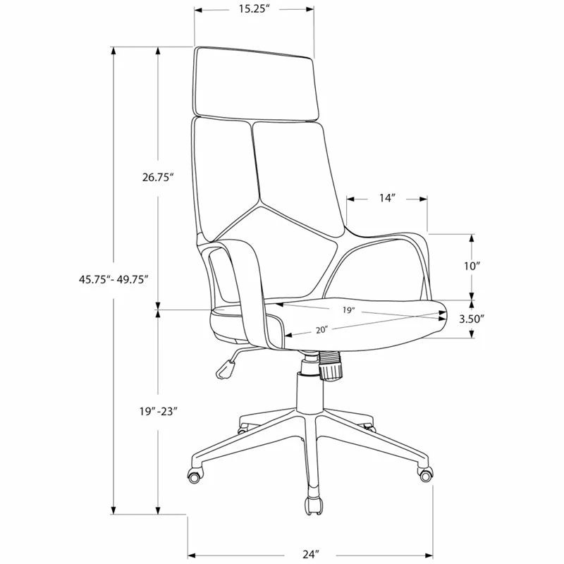 Whether you are at work or at play, it is easy to get your game on when you are sitting in this executive office chair with fixed armrests in black. You are in control of the position and movement of this adjustable height, swivel desk chair that features a tilt function and a black 5-star base with casters that turn in all directions. The tall backrest with an integrated headrest is divided into 4 padded segments that provide targeted support, while the comfortable padded seat is thick, deep, and extra wide. This high-back task chair with dark grey fabric conforms to BIFMA standards for office furniture and delivers a winning combination of support and comfort.