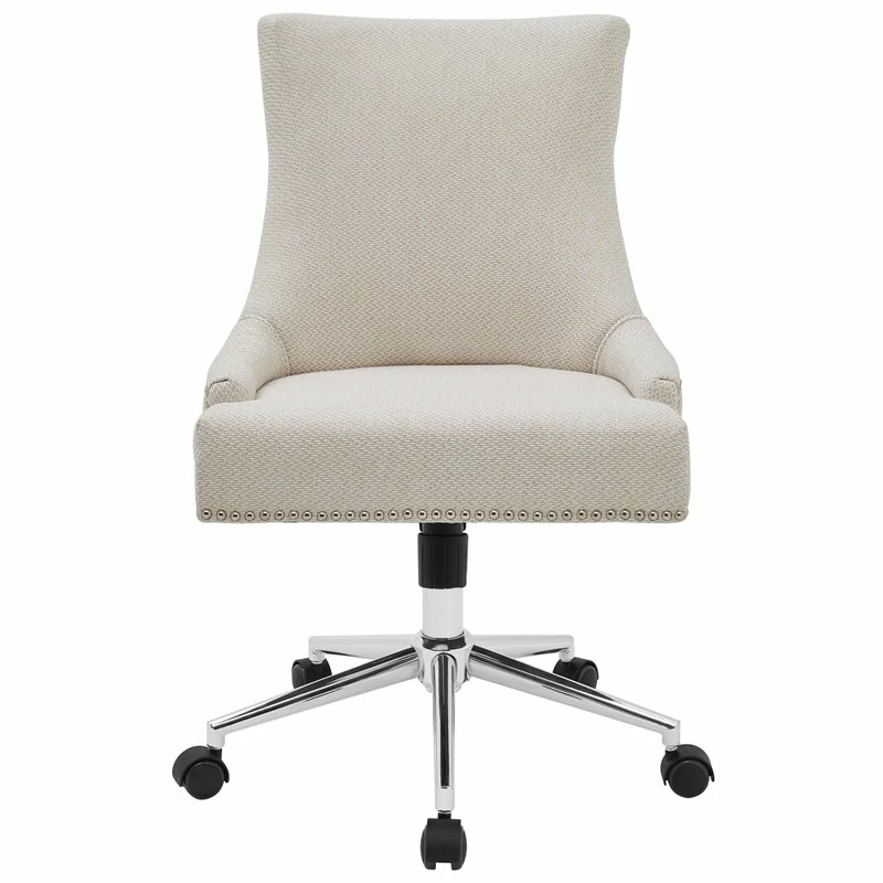 The Charlotte Office Chair isn’t just all-business; the abbreviated arms and silver nailheads give this chair the style credentials it needs to hold its own in any contemporary workspace. Although it features 360-degree swivel, an adjustable seat chrome frame and casters. The understated styling and elegant details make it more than just a practical choice. Assembly required, available in other color options.