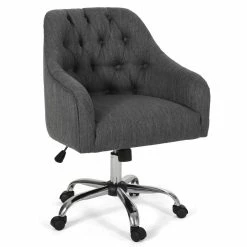 Outlet 😀 Noble House Barbour Tufted Home Office Swivel Chair In Charcoal 💯