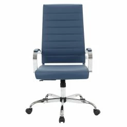 Promo 💯 LeisureMod Benmar High-Back Mid-Century Modern Leather Office Chair In Navy Blue 😉