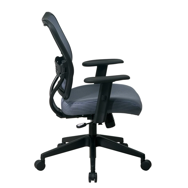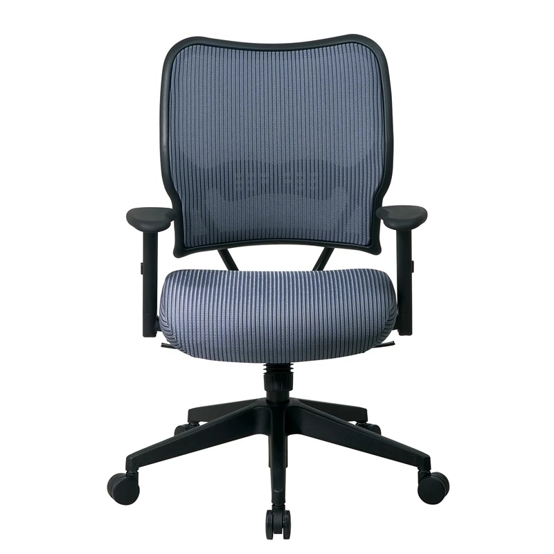 Deluxe VeraFlex Office Chair in Blue Mist Fabric This VeraFlex chair makes a unified design statement. Innovative VeraFlex is stretched within the back frame to provide air-thru comfort and single-material dynamic back support. Comfortable and durable. The striped pattern is available in 5 colorations. Ergonomic features include width and height adjustable arms, 2-to-1 synchro tilt function, adjustable tilt tension, tilt lock and pneumatic seat-height adjustment.
