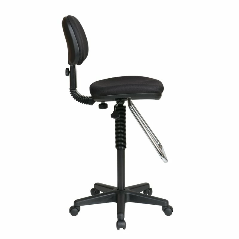 Economical Black Fabric Chair with Chrome Teardrop Footrest The sleek design of this economical chair with chrome teardrop footrest is sure to add elegance to any corporate or home office. Perfect for any shape or size, this chair has a Pneumatic seat height that is adjustable from 23”-33” with a 360 degree swivel and seat depth adjustment making it truly adaptable in any setting!