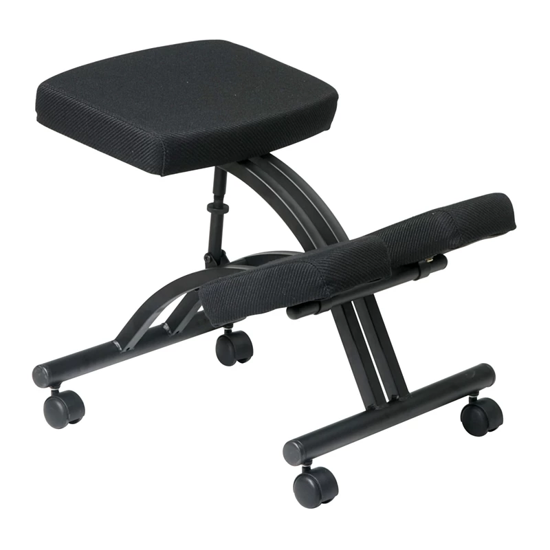 Ergonomically Designed Knee Chair with Memory Foam in Black by Office Star Need something different for your back? Our knee chair series will assist your back with a more aligned position making it more comfortable. Thick padded seat with memory foam, metal frame and dual wheel carpet casters complete this design.