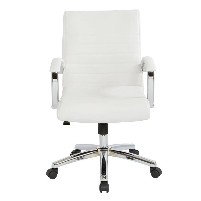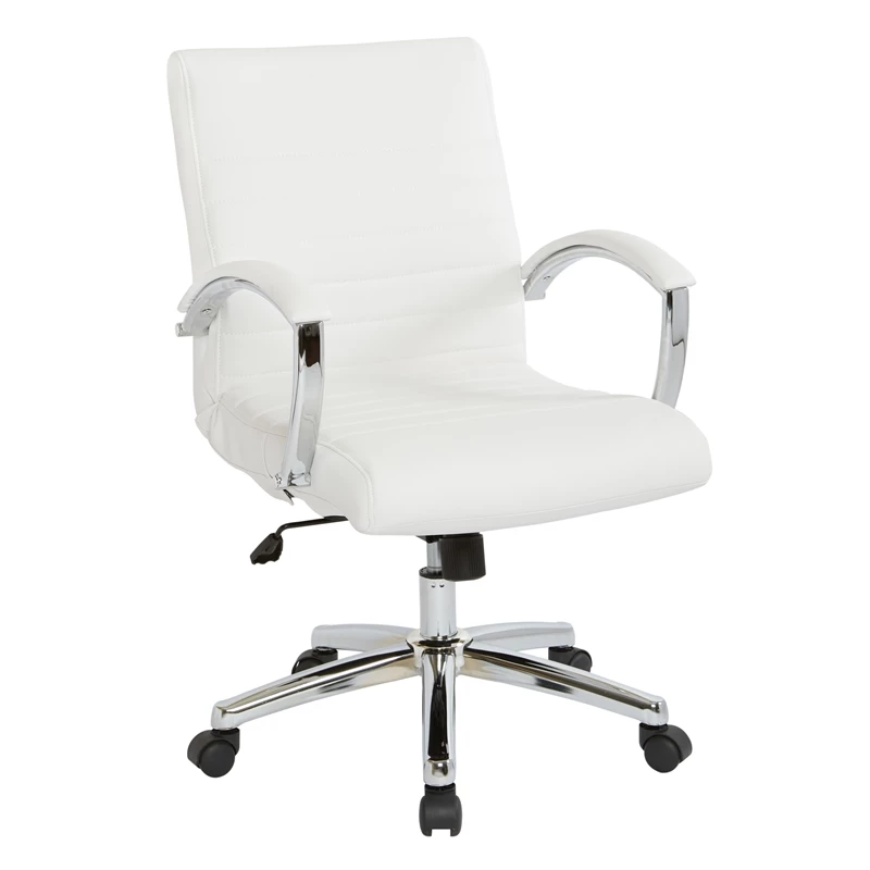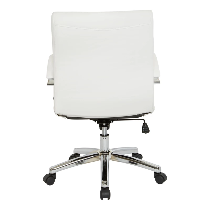 Cheap 🌟 Office Star Executive Low Back Chair In White Faux Leather With Chrome Arms And Base K/D ✔️