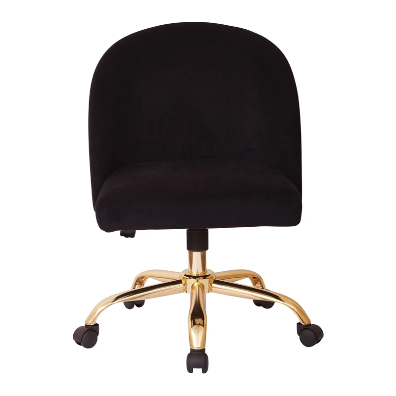 Layton Mid Back Office Chair in Black Velvet with Gold Finish Base Glam home office. Get the classic look of an accent chair combined with the function of an office chair all in one with this stylish task chair. Luxurious velvet brings a cozy vibe, making your home office a place you’ll want to spend all day in. Bring a touch of class to your home office with the Layton office chair.