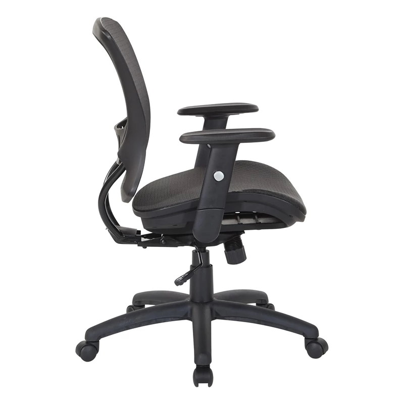 Manager’s Chair Mesh Screen Seat and Back in Black Fabric Stay on task with this black office chair designed for comfort. Sink in to the gentle curve of the breathable mesh seat and back with built in lumbar support while you are hard at work. Multiple adjustments allow for a completely customized seating experience including a 2-to-1 synchro tilt control with adjustable tilt tension, height adjustable arms and nylon base with dual wheel carpet casters. Upgrade your office seating with the Work Smart Mesh Seat & Back Managers Chair.