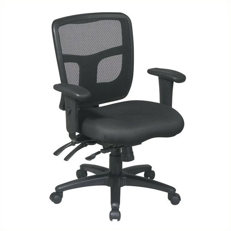 ProGrid Black Mid Back Managers Office Chair with Adjustable Arms Affordable, yet modern ergonomic design are now within reach with the Pro-line High Back Customizable Office Chair. Durably constructed from a breathable and sturdy interweave mesh, the back of this chair is fabricated in a way that fosters comfort and good posture while providing the best in lumbar support. Designed to fit all shapes and sizes, the one touch pressurized controls allow you to fine-tune the seat tilt, seat depth, seat height, and arms rests to your specific comfort level providing for hours of extended comfort whether you are at work or in your home office. Add to cart now for online savings on this durable office chair.