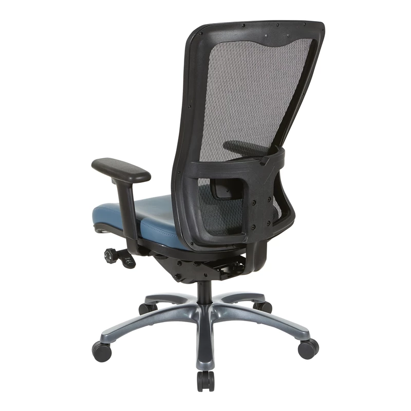ProGrid High Back Mesh Fabric Chair in Dillon Blue Accomplish your office duties in comfort and style with this titanium finished High Back Ergonomic Office Chair. Featuring a thick padded seat for spine support, one-touch pressurized seat height adjustment for ease-of-use, and 3-way adjustable (height, width, depth) padded armrests, you will be able to customize this chair to your heart’s content. A breathable mesh back provides for optimal lumbar support, while the Syncro control seat slider and adjustable tilt tension make sitting for extended periods of time enjoyable. All this combined with durable titanium finished base and dual wheel carpet casters for effortless mobility, this seating option is definitely an office favorite. Add to cart now for online savings on this durable office chair.