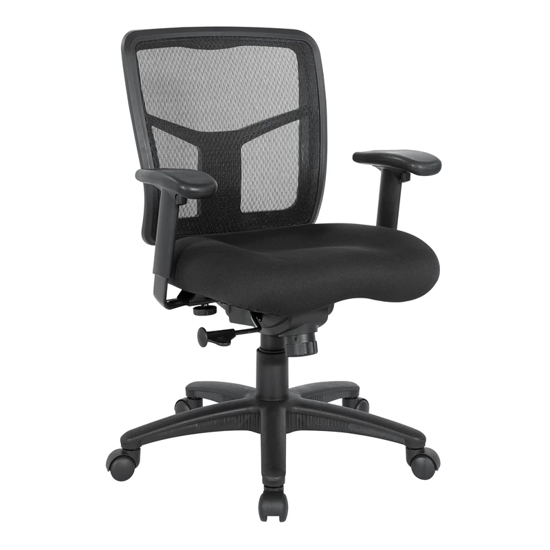 ProGrid® Mesh Back Manager’s Chair with Height Adjustable Arms and Ratchet Back with Coal Black FreeFlex Fabric The ultimate in comfort and affordability, you’ll be ready to take on the day with this mesh office chair. A breathable mesh back with built-in lumbar support and soft, padded seat cradles your body throughout the workday letting you keep your focus and stay productive. Multiple adjustments make it easy to customize your seating experience, from seat height, to tilt, to arm height, to back height. Stay on task and on budget with the Pro-Line II® Manager’s Chair.