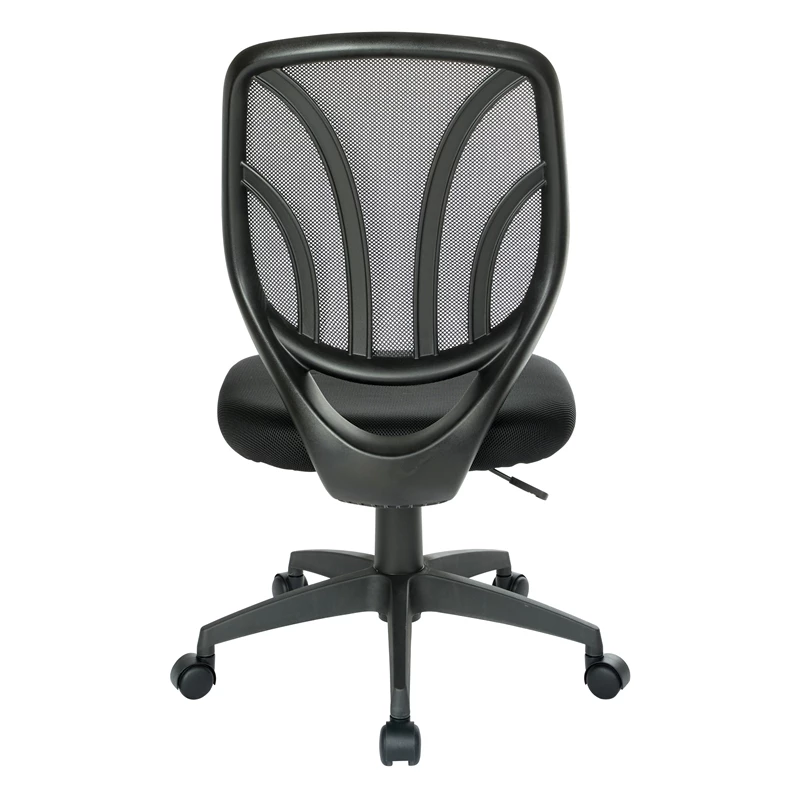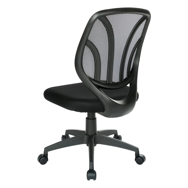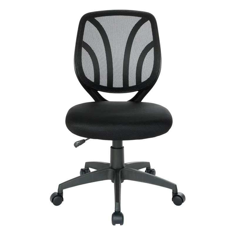 Screen Back Armless Task Chair with Black Mesh Fabric and Dual Wheel Carpet Casters The Screen Back Armless Task Chair features a modern two-tone design and built-in lumbar support. Our task chair is made of a breathable mesh material that allows air to circulate and keep you cool. One-touch pneumatic height adjustment makes the seat customizable for any personalized ergonomic preferences. The fabric mesh seat is available in four exciting colors.