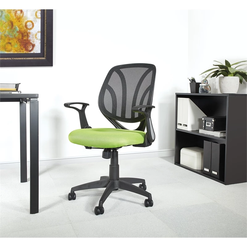 Buy 🎉 Office Star Screen Back Chair With Green Mesh Flip Arms And Silver Accents 💯