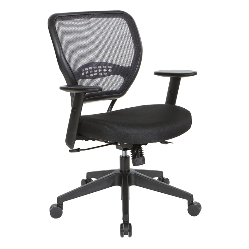 Space Seating 24/7 Intense Use Office Chair Breathable Air Grid in Black Fabric The Space Seating 24/7 Intense Use Office Chair with Breathable Air Grid® is designed to provide exceptional support for hard-working professionals in extended use or multiple-use environments. The Breathable Dark Air Grid® back with height-adjustable lumbar support keeps you cool and poised even after working long hours to meet a deadline. Generously padded memory foam seating ensures long-lasting comfort. Equipped with key features that assist to accommodate individual needs such as easy One-touch pneumatic seat height adjustment, smooth transitioning 2-to-1 Synchro tilt control with adjustable tilt tension and seat slider, and helpful height adjustable arms with PU padding. Set upon a durable black nylon angled base with oversized dual wheel carpet casters that deliver easy mobility. Covered with an impressive 24/7 Elite Seating warranty for 5 years on all component parts, and 2 years on foam and fabric.