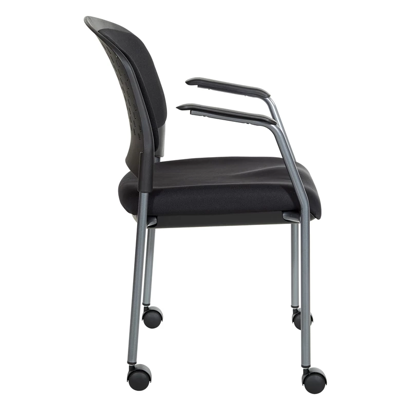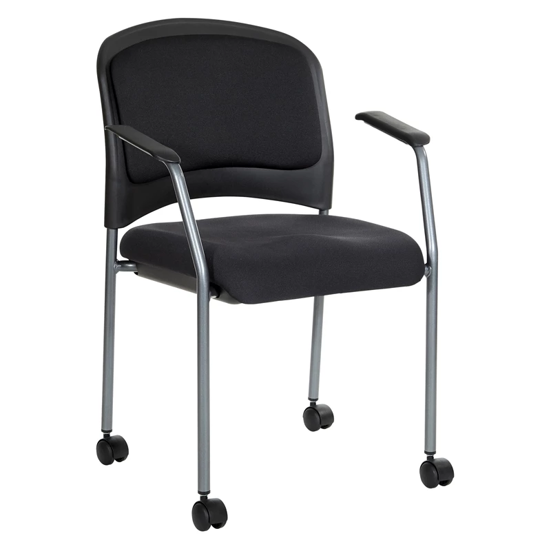 Best Sale ๐งจ Office Star Titanium Finish Rolling Visitors Chair With Casters In Black Fabric โ