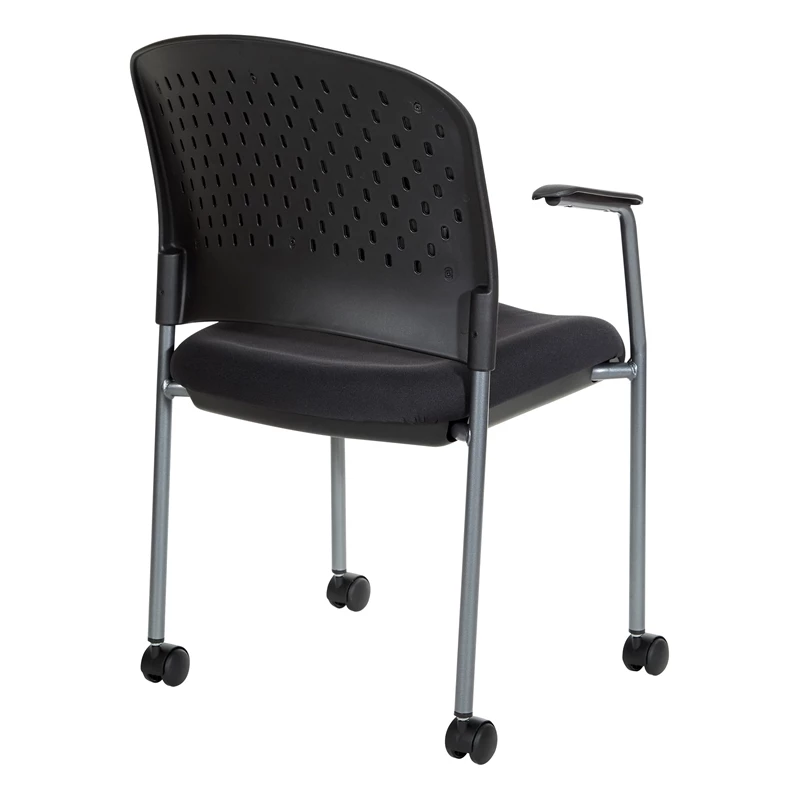 Titanium Finish Rolling Visitors Chair With Casters in Black Fabric Our Pro-Line II® deluxe stacking chairs are versatile for any classroom or office space. This modern visitors chair features a contour upholstered back in Coal FreeFlex® padded fabric. Dual wheel carpet casters help boost productivity and easily stack for storage. Our GREENGUARD indoor air quality certified chairs are backed by a limited lifetime warranty, so you’ll enjoy using these chairs for years to come.