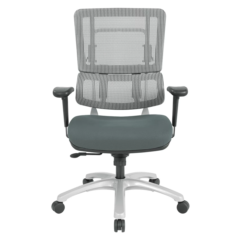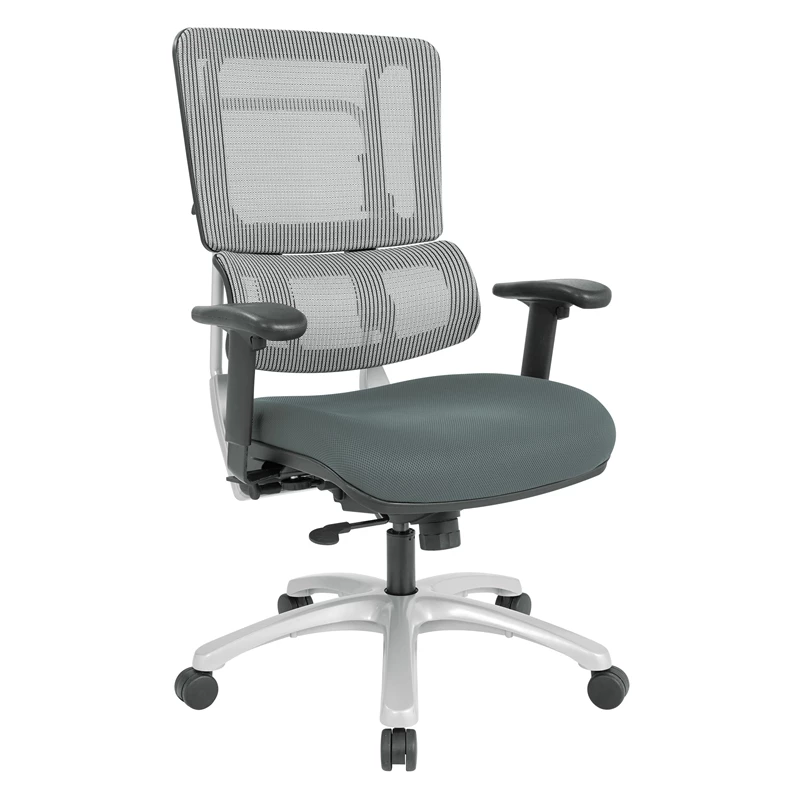 Vertical Gray Mesh Back Fabric Chair with Silver Base and Gray Mesh Seat Lavish up your daily work routine with the Proline II Managers Chair. Decorated with a breathable vertical mesh back and adjustable lumbar support, you’ll feel both relaxed and more motivated in the workplace. Show off your professional style with a polished base and dual-wheel carpet casters for accessible mobility. Slick adjustable features and an affordable price make this an intuitive choice for any office.