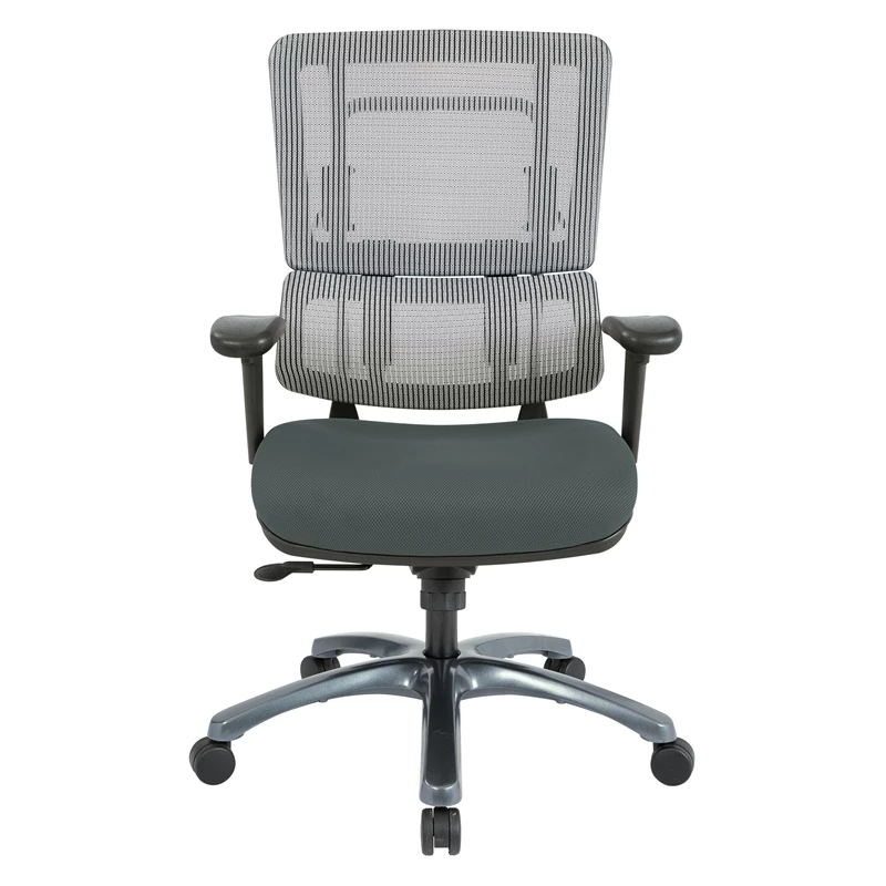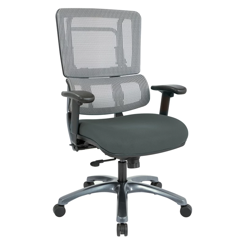 Vertical Gray Mesh Fabric Back Chair with Titanium Base and Gray Mesh Seat Lavish up your daily work routine with the Proline II Managers Chair. Decorated with a breathable vertical mesh back and adjustable lumbar support, you’ll feel both relaxed and more motivated in the workplace. Show off your professional style with a polished base and dual-wheel carpet casters for accessible mobility. Slick adjustable features and an affordable price make this an intuitive choice for any office.