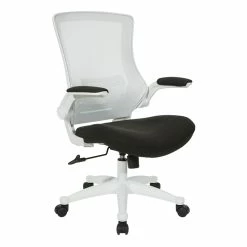 White Screen Back Manager’s Chair in Linen Black Fabric Everyone needs a smart, stylish chair to support them throughout the day and the Screen Back Manager’s Chair by Work Smart® with faux leather seat and padded flip arms with silver accents is sure to please. This high-style look includes a supple, padded faux leather seat and adjustable padded flip arms for hours of plush comfort. A breathable screen back with built-in lumbar support gives this chair its modern attitude while keeping you cool throughout the day. One-touch pneumatic seat height adjustment, locking tilt control and adjustable tilt tension ensure you’re comfortable and in an ergonomic position for maximum productivity. This manager’s chair also features an attractive ultra-modern white base with dual-wheel carpet casters that ensure effortless mobility.