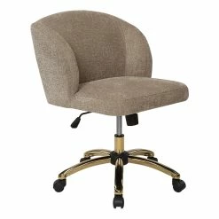 Ellen Office Chair in Honey Beige Fabric with Gold Base Express your style and elevate your comfort level with the perfect office chair for the modern home office. Featuring height adjustability, adjustable tilt tension and smooth dual wheel caster movement. The sophisticated style of a chic office chair will provide the ideal seating solution. Trendy colors and contemporary chrome 5-star base will instantly make over your home office to a workspace haven.