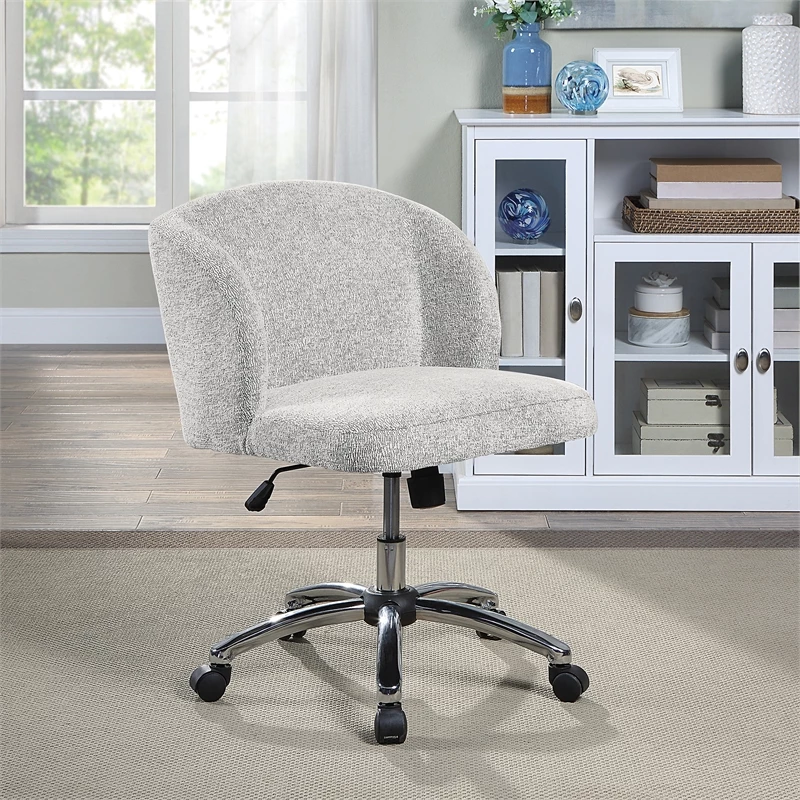 Ellen Office Chair in Parchment Gray Fabric with Chrome Base Express your style and elevate your comfort level with the perfect office chair for the modern home office. Featuring height adjustability, adjustable tilt tension and smooth dual wheel caster movement. The sophisticated style of a chic office chair will provide the ideal seating solution. Trendy colors and contemporary chrome 5-star base will instantly make over your home office to a workspace haven.