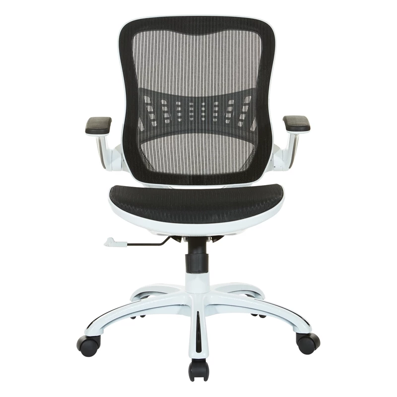 Riley Office Chair with Black Mesh Fabric Stylish, functional seating for the home office that helps you work hard all day long. Enjoy the comfort of breathable mesh fabric and built-in lumbar support alongside the attractive white frame finish of this stylish office chair. The adjustable seat height makes this chair ideal for a variety of users. Upgrade your home office seating with the Riley manager’s chair.