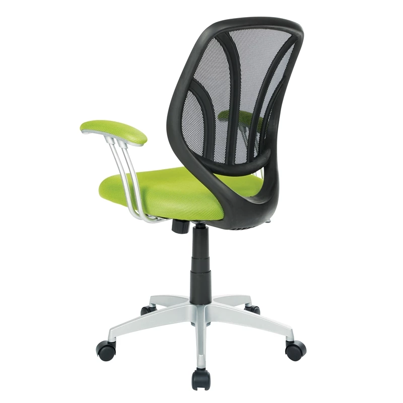 Outlet ✨ OSP Home Furnishings Screen Back Chair With Green Mesh Fabric And Silver 🧥 Coated Arms And Base 😍