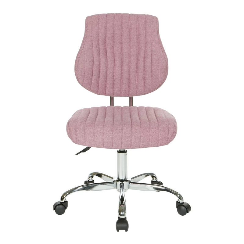 Sunnydale Office Chair in Orchid Purple Fabric with Chrome Base Fun fashionable colors and modern silhouette, the Sunnydale office chair delivers warmth and style to your home office. Plush channel-tufted seat and back with built-in lumbar support are as pretty as it is comfortable. The pneumatic height adjustment and 360º rotation allow for flexibility of use in your workspace. The durable chrome base adds a lovely sheen, while you travel easily across your floor on the heavy-duty dual carpet casters. This chair not only brings color and style but also offers outstanding functionality to make your workday smoother and easier.
