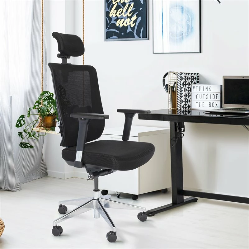Are you damaging your posture while spending long hours hunched over, working at home or at your workplace? The high back Ergonomic Mesh Task Chair is the perfect fit for you! This chair provides a high back with an adjustable head rest that adjusts to support your body while you work under pressure. Say goodbye to stationary office chairs; easily swivel and glide when you need to reach for documents or supplies out of arm’s length. The multiple features and breathable mesh material maximize comfort in any work environment. There is no need to sacrifice style for comfort, the silver color heavy duty base and silver accents are sure to make a statement in your work area.