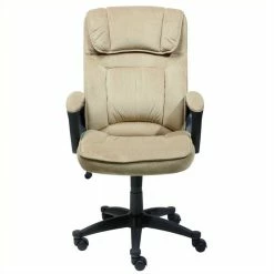 About This Product: For more than 75 years, Serta has been an industry leader in comfort products worldwide. That tradition of innovation and quality continues today. From a brand that is synonymous with quality, comfort and style, the Serta executive office chair is upholstered in soft and durable Light Beige microfiber. This chair features soft pillowed headrest & plush layered body pillows which offer the body a serene and tranquil seating experience. The contoured lumbar provides exceptional support for the lower-back, while the sculpted arms have pillow soft pads which provide added hand, wrist, and forearm comfort. The waterfall seat edge is designed to lessen pressure on the back of the legs, and increase circulation, to reduce fatigue and increase working focus. The pneumatic gas lift adjusts the seat height by a simple flick of the lever. Pulling out the same handle will unlock the recline mechanism and allow you to lean back in comfort. The recline resistance can be adjusted with a turn of the tension knob on the bottom of the seat. Smooth rolling multi-surface dual wheel casters provide easy access to your surrounding work area. The heavy duty five-star base meets or exceeds rigorous BIFMA testing standards up to a 250lbs weight capacity. 1 year limited warranty. Product assembly is required. Designed in the USA.